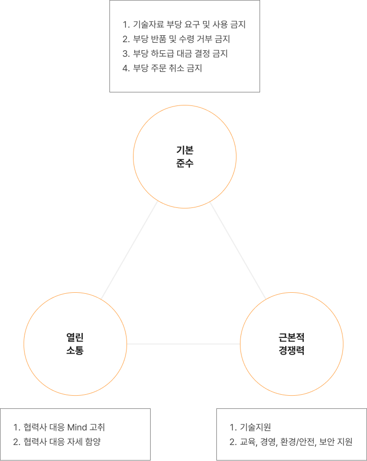- 2. 경쟁력 있는 협력사 육성을 위해 단순 지원이 아닌 근본적 체질개선에 초점을 둔다.